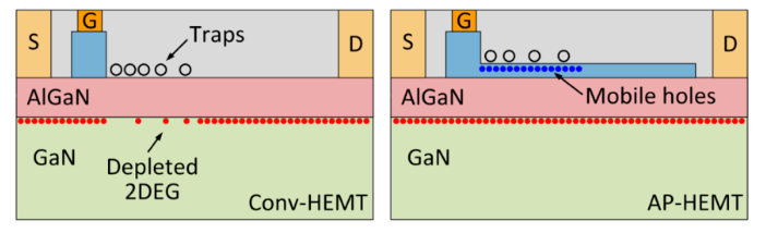 他们研究发现GaN 功率器件具有“动态阈值电压”特性,这说明 GaN 器件跟SiC器件类似,阈值电压本质上是动态变化的,而非由材料缺陷所导致;动态电阻退化源于器件表面的陷阱电荷长时间与下方的沟道的载流子相互排斥。