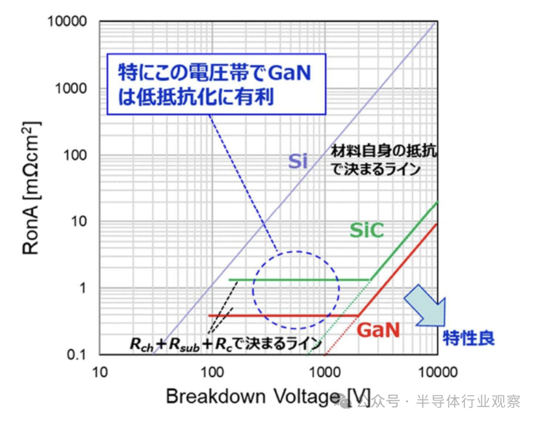 图3:使用OVPE方法制造的超低电阻GaN衬底可以制造比SiC导通电阻更低的器件