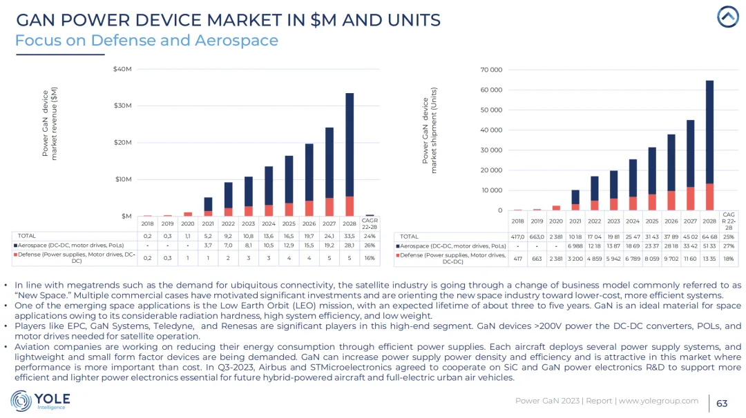 5、在国防和航空领域,Power GaN技术因其在极端环境下的稳定性和高效率而被应用于各种军事和航空电子系统。预计到2028年将达到3.35亿美元,显示出2022年至2028年间24%的复合年增长率。这一市场的增长受到低地球轨道(LEO)卫星和航空电子应用中对高可靠性和高性能电源解决方案的需求推动。
