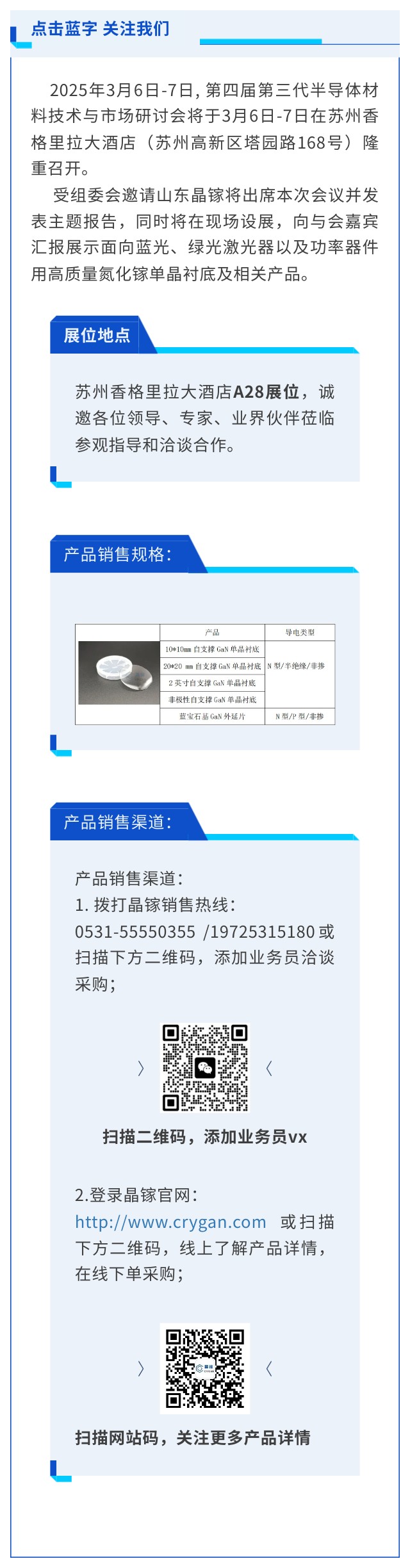 邀请|助力2025年第四届第三代半导体材料技术与市场研讨会,GaN单晶优惠抢先开启